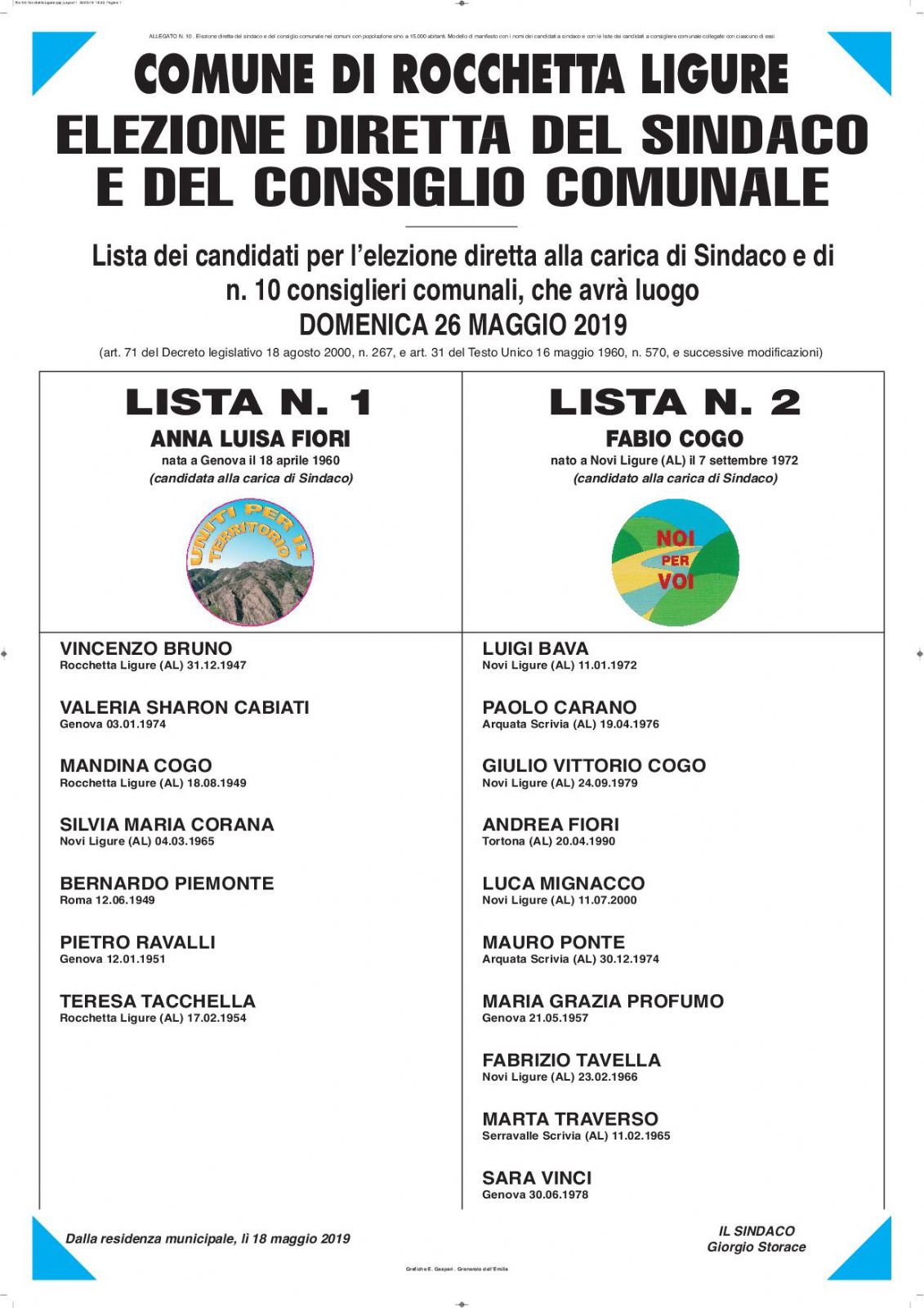 MANIFESTO LISTE COMUNALI